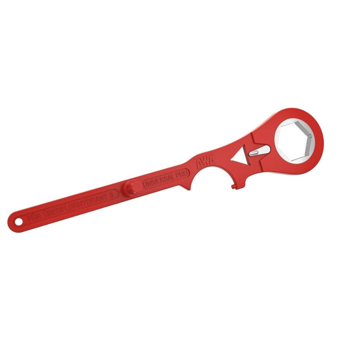Dieser neu entwickelte Hydrantenschlüssel Form B verfügt über ein Sperrklinkenprinzip, mit dessen Hilfe sich die Überflurhydranten effizienter öffnen und schließen lassen. Durch die leichte Bedienbarkeit kann die Wasserentnahme schnell und sicher ausgeführt werden. Zusätzlich wurde ein Dreikant-Schlüssel M12 sowie ein Sechskant-Schlüssel SW17 und
