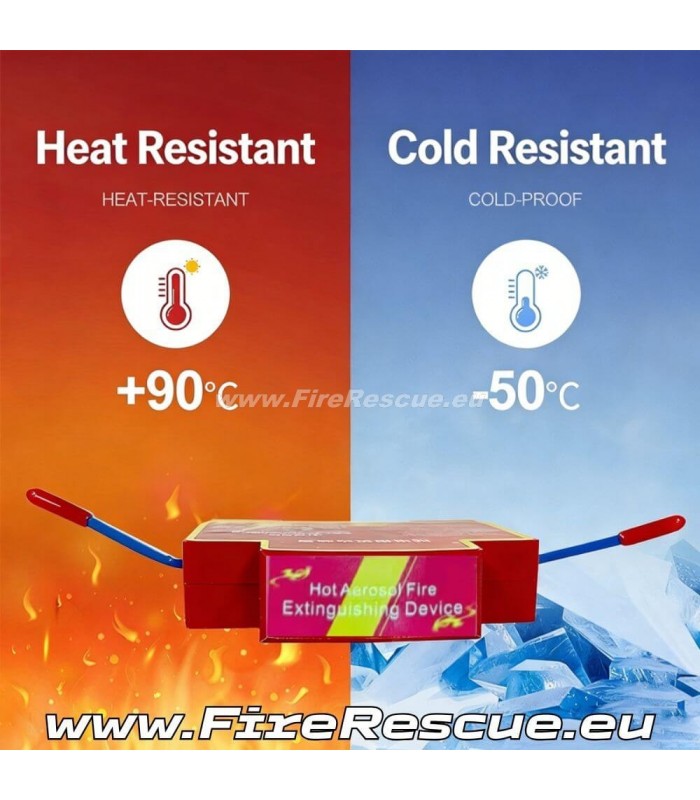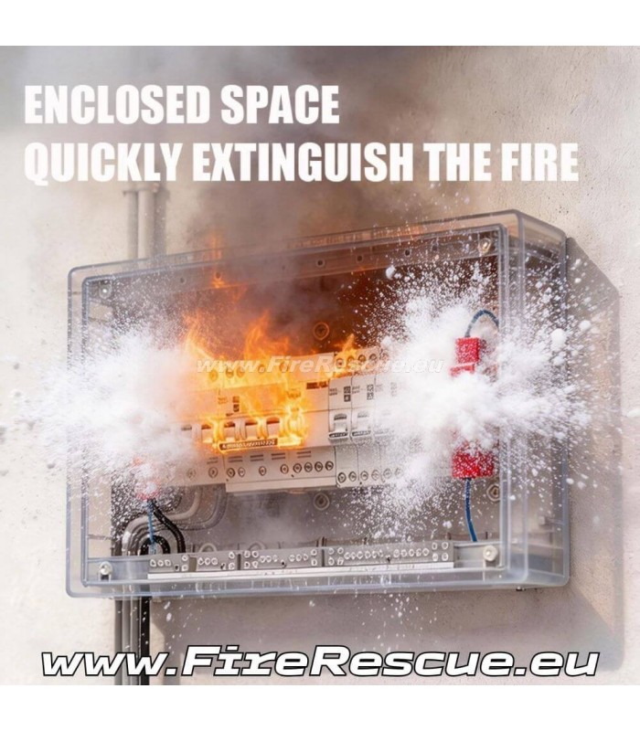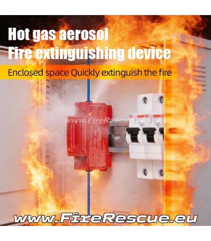 Automatisches Aerosol-Feuerlöschgerät: Wirkt durch eine Redoxreaktion, die Aerosolpartikel erzeugt. Diese absorbieren Wärme, senken die Flammentemperatur und hemmen die Verbrennung.