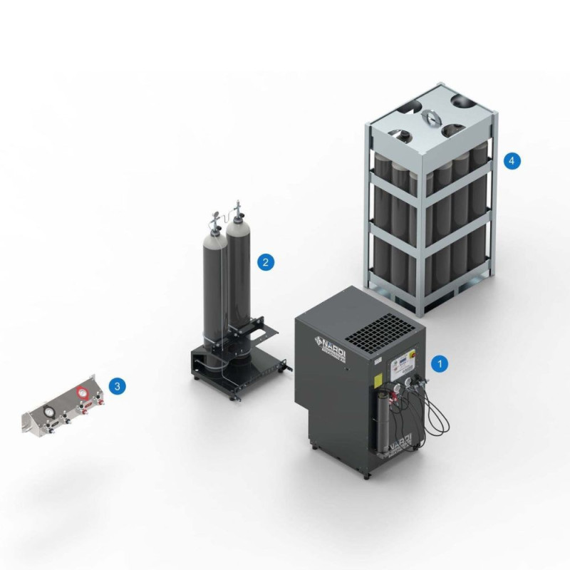 - Für den korrekten Betrieb des Verstärkers hat NARDI ein neues elektronisches Bedienfeld entwickelt. Dieses neue System steuert alle wichtigen Parameter wie Temperatur, Ölstand, Stromverbrauch, Eingangs- und Ausgangsdruck und überwacht alle Sensoren, Ventile und Magnetventile.