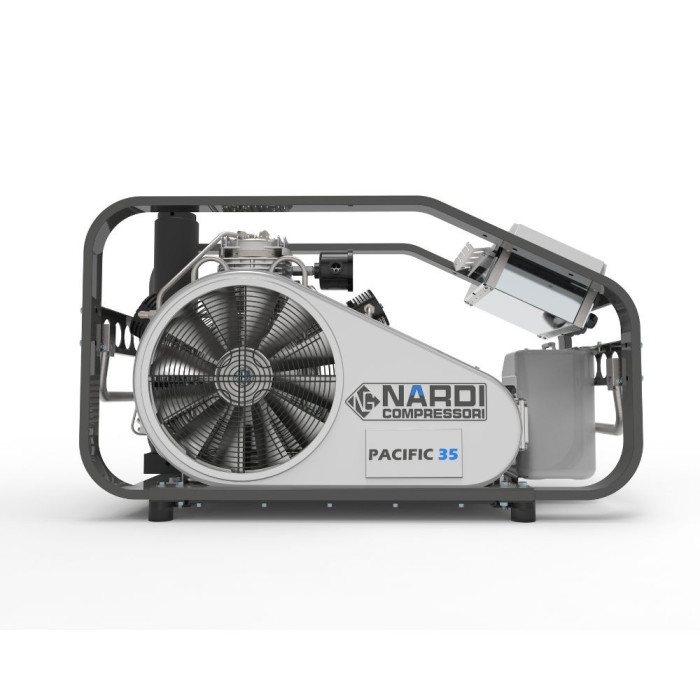 Mittelleistungs-Hochdruckkompressor NARDI PACIFIC P, zum schnellen Befüllen großvolumiger Druckbehälter für Feuerwehrleute und Taucher. Mit einer Füllleistung von 160 bis 350 Liter/min und Luftqualität nach DIN EN 12021.