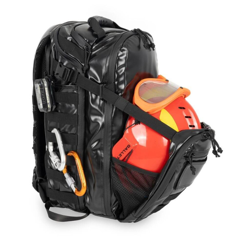 Ein robuster und funktionaler Elite Bags Rucksack, entwickelt für den Transport von Helmen und wichtiger Ausrüstung in Notfallsituationen. Ideal für Feuerwehr und Rettungskräfte, die schnell auf ihre Ausrüstung zugreifen müssen.