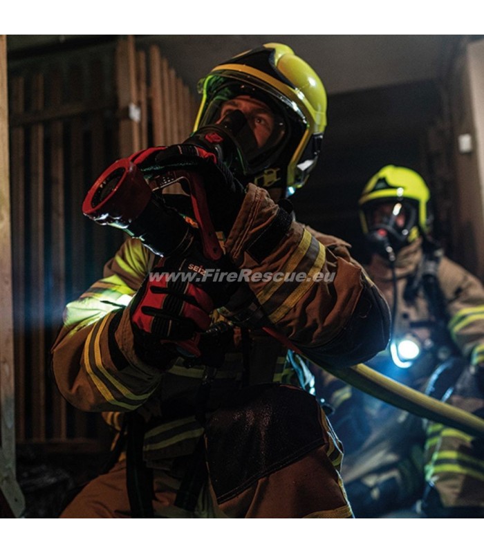 - Stulpe: Stulpe aus NOMEX® mit patentiertem ZIP'N'CLOSE Verschlusssystem (Reiß- und Klettverschluss). Die Vorteile einer Standardstulpe und einer Strickstulpe werden kombiniert. Dampf- und wasserdicht bis zum Stulpenende. Sehr gute Passgenauigkeit in Verbindung mit Einsatzjacken. Innenangebrachte Schlaufe für Karabiner zur Befestigung der Handschuhe an der Einsatzjacke.
