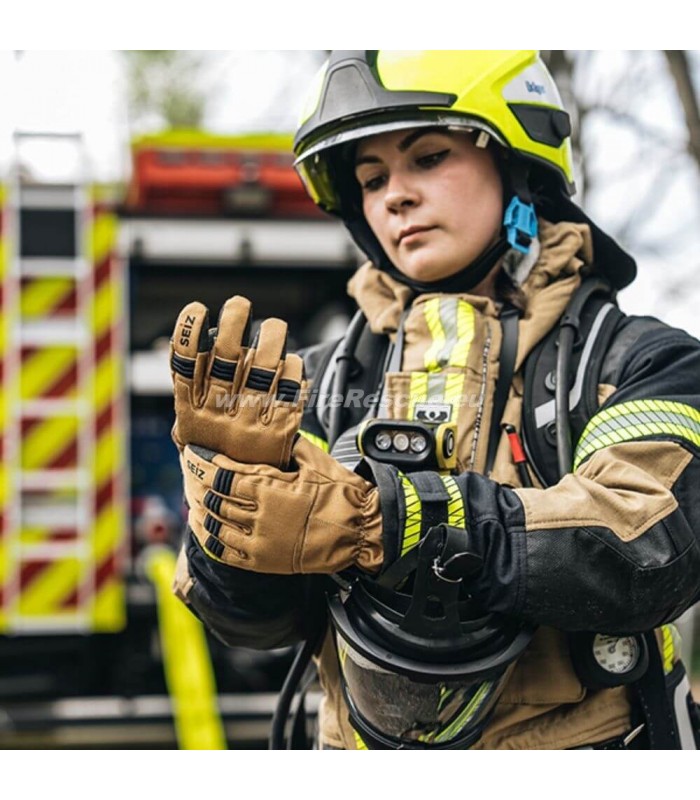 Universelle Feuerwehrhandschuhe Seiz FIRE-FIGHTER NOVA GOLD für die Brandbekämpfung und technische Rettung. Hergestellt nach EN 659 und der höchsten Schnittschutzklasse stellen diese Handschuhe des Herstellers SEIZ eine völlig neue Schutzklasse für Feuerwehrleute unter schwierigen Arbeitsbedingungen dar.