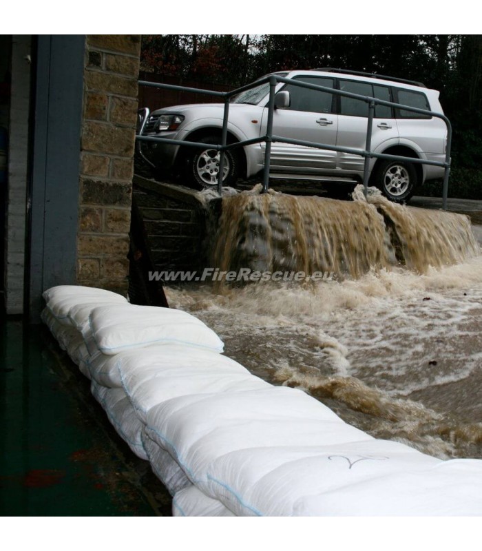 - aufgrund ihres Gewichts schwierig und teuer zu transportieren. Eine Kiste mit 20 FloodSax entspricht 20 Sandsäcken auf einer Palette.