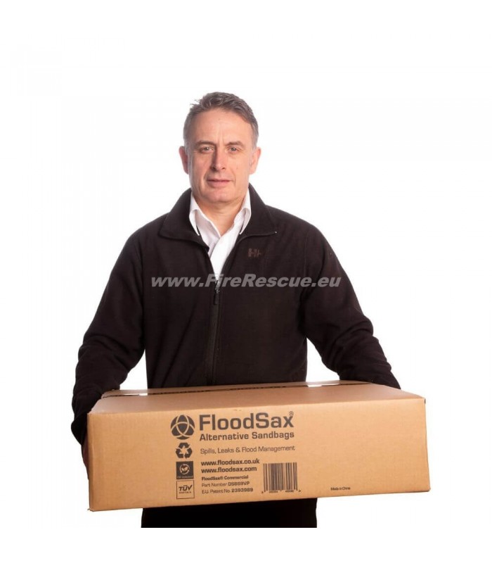 - Wir liefern FloodSax in Kartons mit 20 Stück, was ausreicht, um eine Spannweite von 2 Metern bis zu einer Höhe von etwa 60 cm zu schützen.