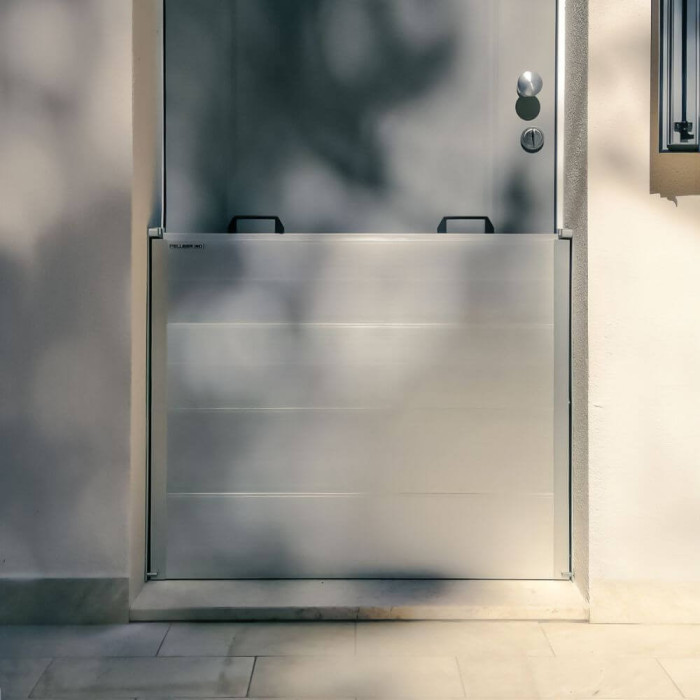 Die Hochwasserschutzbarriere RAPID CLICK aus Aluminium ist ein zuverlässiger Schutz gegen das Eindringen von Wasser in das Gebäude. Kompletter Schutz für Türen und Fenster. Montage im Hochwasserfall in nur 2 Sekunden.