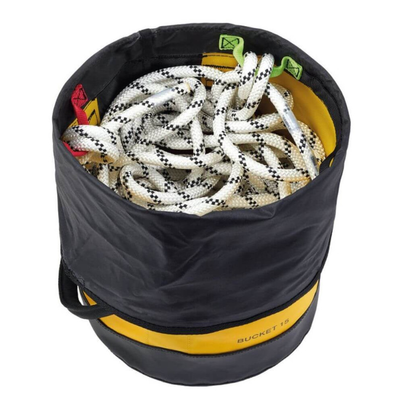 Der einfache, robuste BUCKET 15-Seilsack ermöglicht, bis zu 45 Meter Seil mit einem Durchmesser von 11 mm zu verstauen. Er ist standfest und behält seine Form, selbst wenn er leer ist, um den Zugriff auf den Innenbereich zu erleichtern.