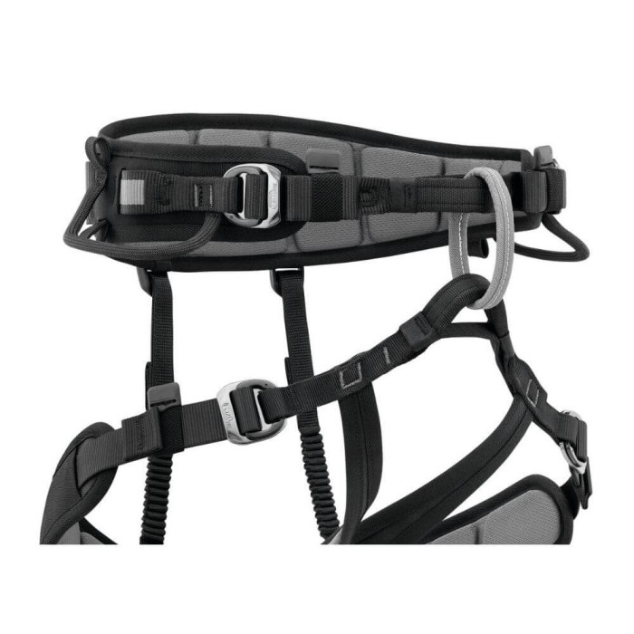 - ventrale Befestigungsöse mit textilem Steg, um die Fortbewegung mittels Vorstiegstechnik zu erleichtern und den Komfort beim Gehen zu verbessern