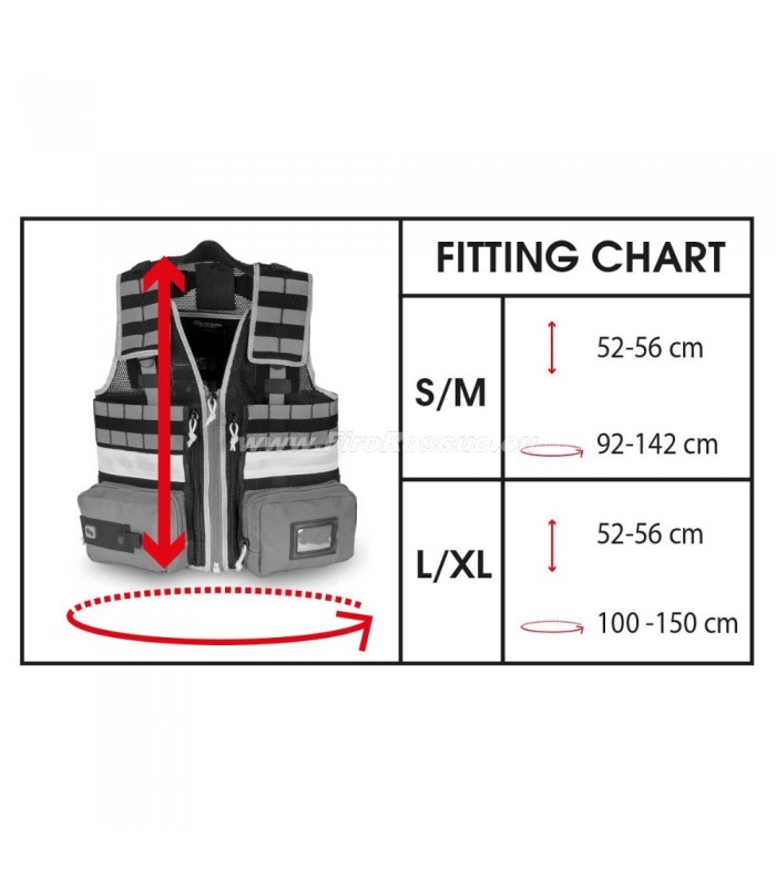 Entwickelt aus Netzgewebe mit einem gut sichtbaren Reflexionsband am gesamten Umfang. Es verfügt über zwei äußere Vordertaschen für Diagnose- und Interventionsmaterial, zwei flache Innentaschen mit großem Fassungsvermögen, ein inneres hinteres Fach für einen Trinkbeutel und ein vorderes, hinteres und seitliches MOLLE-System zur Befestigung von zusätzlichem medizinischem und / oder taktischem Material.