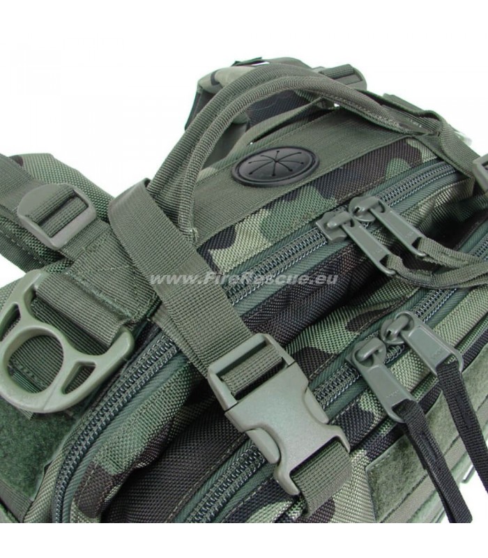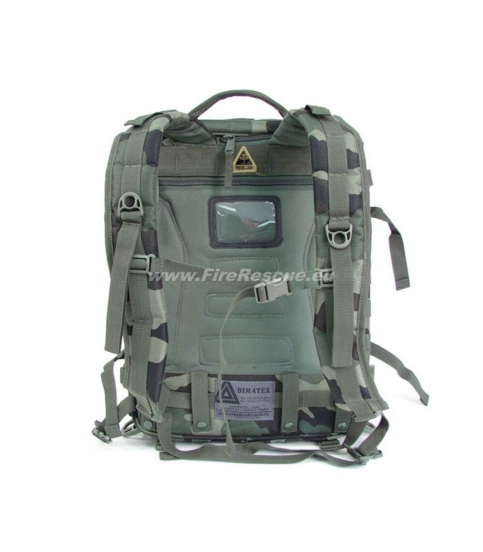 Der Dimatex Notfallrucksack TALWEG (40 Liter) dient der schnellen Identifizierung von Rettungskräften. Er verfügt über 5 transparente Taschen, externe und interne MOLLE-Gurtbänder sowie eine Öffnung für eine Trinkblase. Zuverlässig in Notfallsituationen.