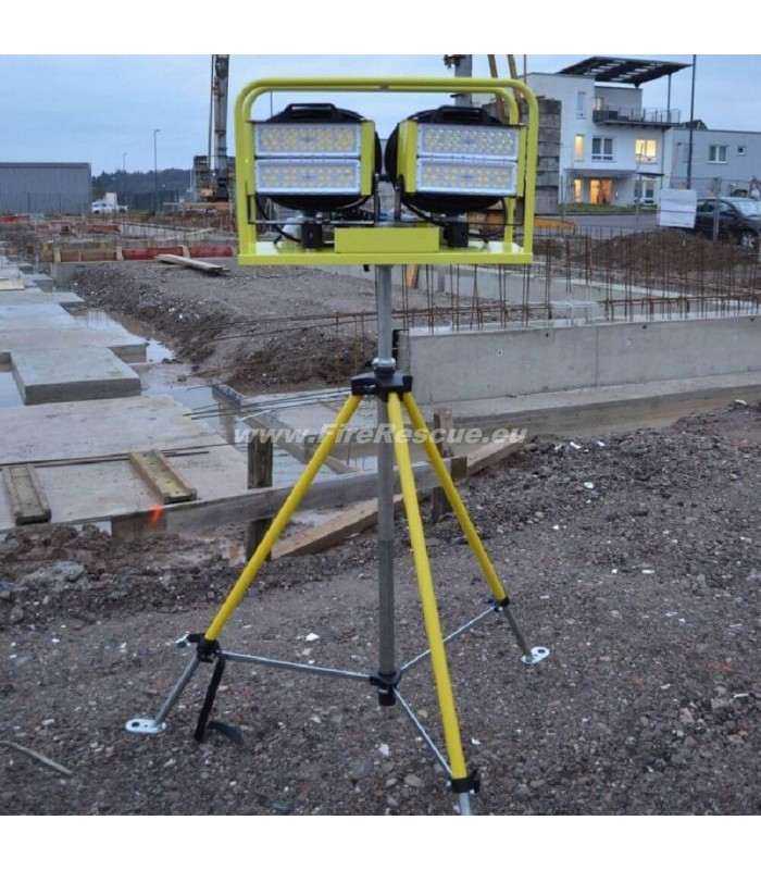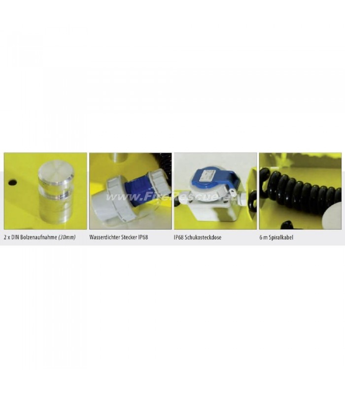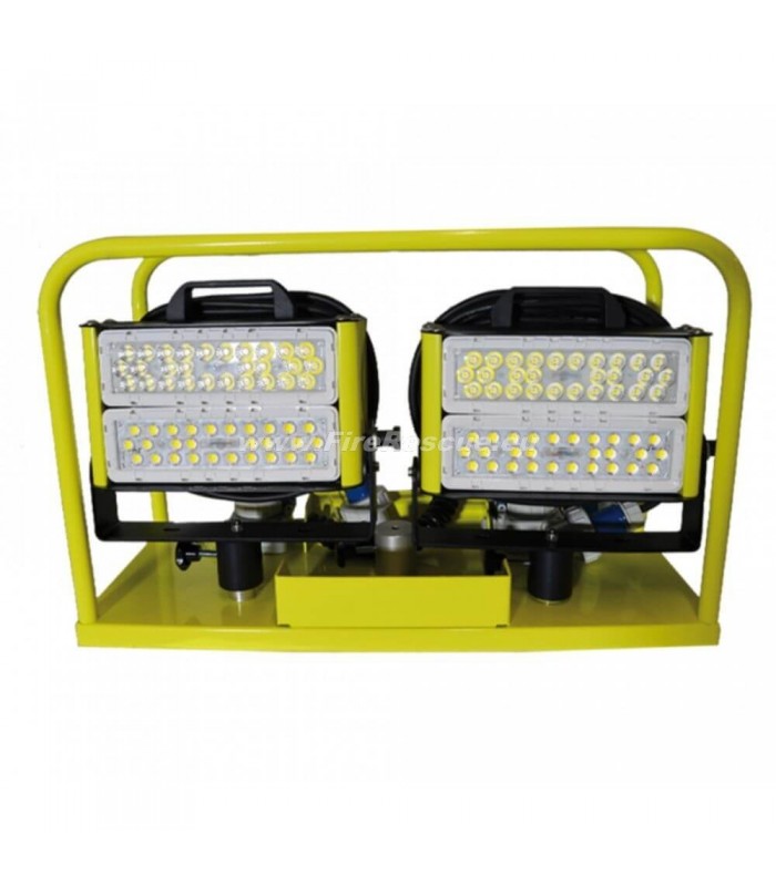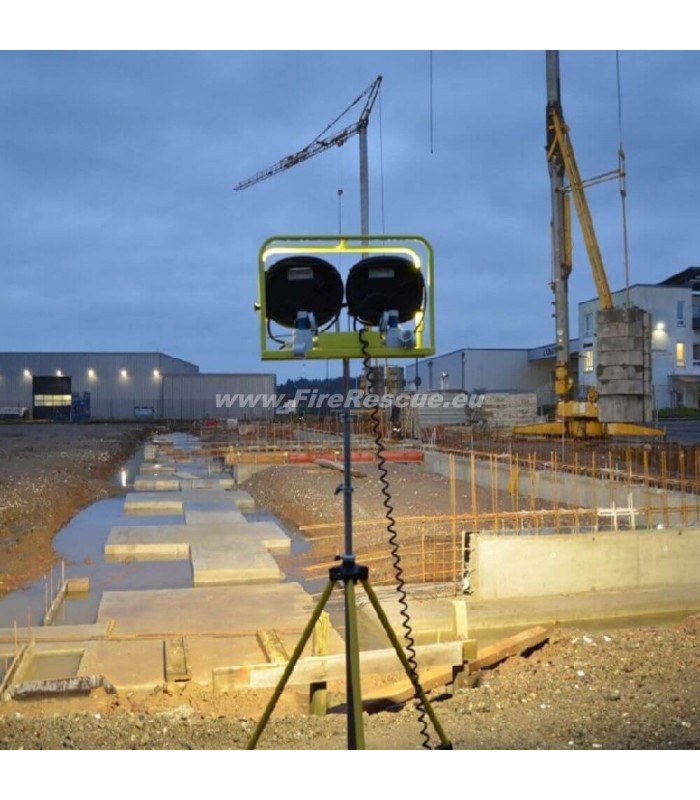 SETO Scheinwertrage mit 2x GLADIUS 2K 230 V, mit 2 Stk. GLADIUS 2K 230 V, Gestell mit Bolzenaufnahme 30 mm, 6m Spiralkabel, 2x Steckdose IP68 blau.