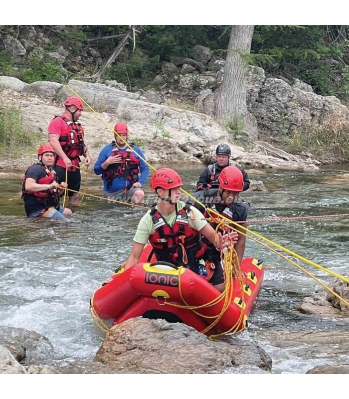 Der Titan-Schlitten ist für Anwendungen wie Wasser-, Schlamm- und Eisrettungseinsätze konzipiert. Mit einem angehobenen Bug eignet sich der Titan gut für Situationen mit schnellem Wasser, sodass Retter ihre Aufgaben erfüllen können und das Risiko einer Überschwemmung des Schlittens durch Wasser verringert wird. Der Schlitten ist für die Beförderung von zwei Rettern und einem Verletzten konzipiert, bietet aber Platz für bis zu fünf Personen.