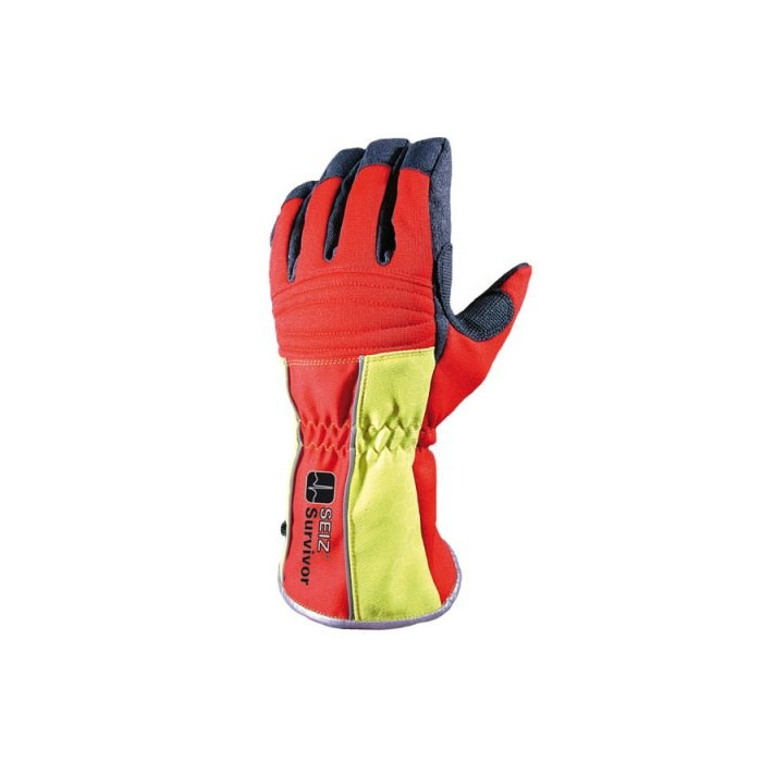 - Stulpe: 100% NOMEX® in rot und gelb. Gelb nachleuchtender Wabendruck. Seitliche Schlaufe zur Befestigung der Handschuhe an der Einsatzjacke.