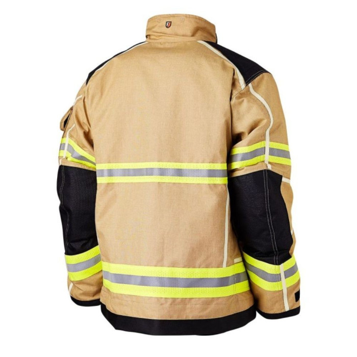 Wie die erstaunlichen 7-Bahnen-Ärmel, die so gestaltet sind, dass die Jacke beim Strecken oder Klettern nicht hochrutscht, oder die 3D-Abstandshalter, die Verstärkung und Festigkeit um die Schultern und den unteren Rücken bieten, die Kompression durch das Tragen von Atemgeräten verringern und die Wahrscheinlichkeit verringern Verletzungen aufgrund von Dampfverbrennungen, die durch Schweiß entstehen, der bei erbitterten Brandbekämpfungsbedingungen nicht abgeführt wird.