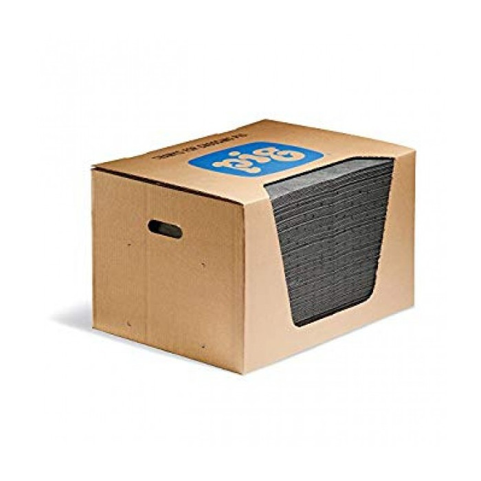 Universal-Saugmatten und -rollen absorbieren und speichern Öle, Kühlmittel, Lösungsmittel und Wasser. Die hochwertige, hochabsorbierende PIG-Matte besteht aus acht Schichten thermisch gebundenem Polypropylen, die höchste Belastbarkeit und Abriebfestigkeit garantieren. PIG Essentials-Matten stehen für eine zuverlässige und preisgünstige Methode zum schnellen Aufsaugen und Entsorgen von Verschüttungen – die Matten sind in den Leistungsklassen MeltBlown, SonicBonded und FineFibre verfügbar.- Die Rollen der Größe 10 cm x 46 m eignen sich hervorragend für das Abdecken langer Strecken und schmaler Bereiche oder für das Auslegen von Behältern; die Matten absorbieren und speichern Leckagen, Kondenswasser und Verschüttungen, um eine Ausbreitung auf Gehwege zu verhindern