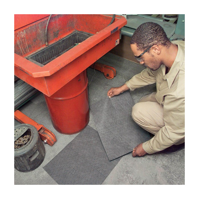 - Nimmt Leckagen und Verschüttetes auf, so dass die Böden trocken bleiben und die Mitarbeiter sicher sind. Die stabile strapazierfähige PIG® Mat hält länger, so dass weniger Matte verbraucht und Zeit beim Mattenwechsel eingespart wird.