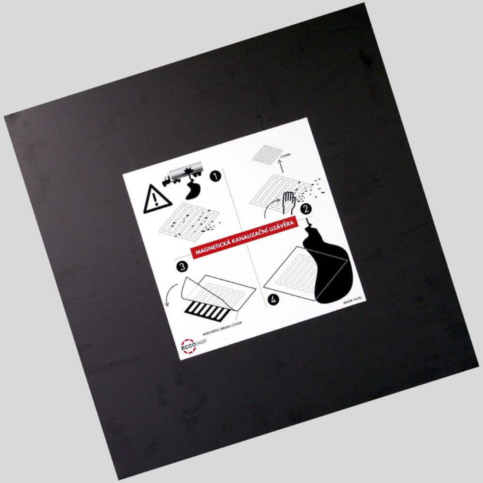 Als Material wird hier eine isotropische permanent magnetische schwarze Folie mit Stärken von 0,7 bis 0,9 mm verwendet, Anpressdruck: 52 g/cm², Temperatureinsatzbereich: -20 °C bis +80 °C (bei niedrigen Temperaturen wird die Flexibilität beeinträchtigt). Die Abdeckung ist gegen Witterungseinflüsse, Erdölprodukte, verdünnte Säuren und Laugen beständig.