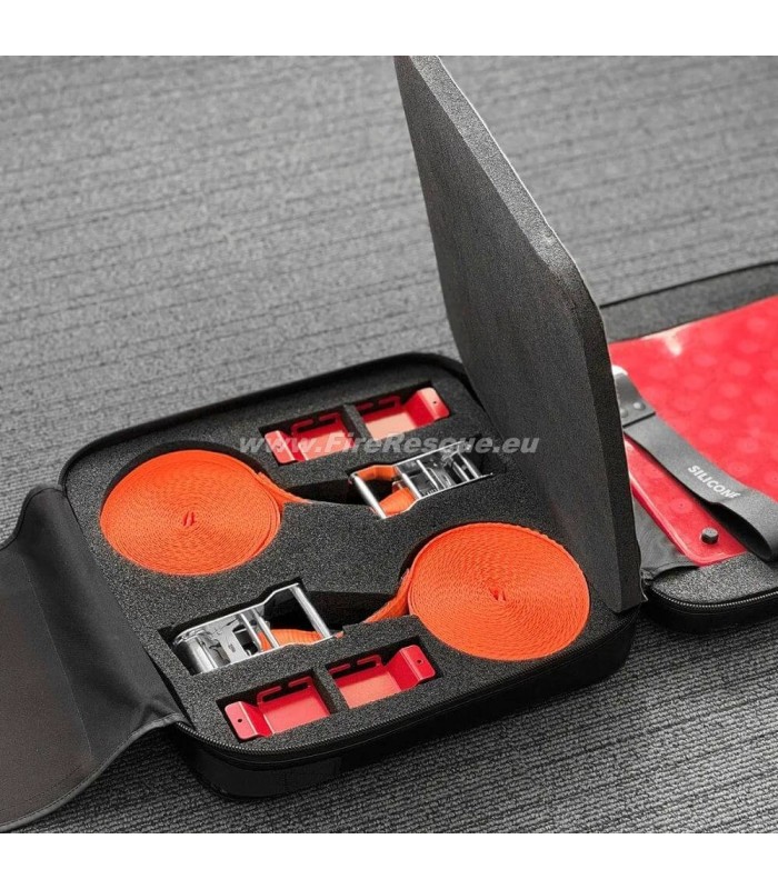 - Das Leckdichtkissen kann bei Bedarf repositioniert werden. Ausgestattet mit zwei verstellbaren Ratschen-Gurtsystemen gewährleistet das Set, dass das Leckdichtkissen fest an der beschädigten Oberfläche sitzt.