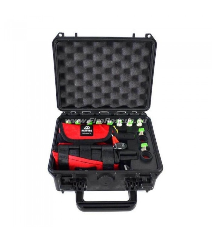 Der Restube Einsatzkoffer 3 bietet gleich zwei Hilfsmittel für Rettungseinsätzen am Wasser, die je nach Szenario optimal unterstützen: Restube lifeguard, eine manuell auslösbare Boje mit 75 N, die über ein komplettes Zugsystem und 2 Knickstellen verfügt, sodass ein Verunfallter mit Ösen und Karabiner im Wasser stabilisiert werden kann. Und Restube automatic, das sich bei Wasserkontakt automatisch aufbläst und aus sicherer Entfernung einer verunfallten Person im Wasser zugeworfen werden kann. Inklusive Ersatzpatronen für bis zu 8 weiteren Auslösungen.