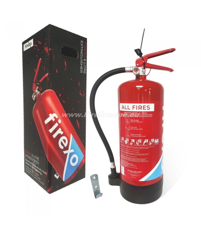 Firexo ALL FIRES 6 Liter roter Feuerlöscher, für ALLE Brandklassen: A, B, C, D, Elektro-, F- und Lithium-Ionen-Batteriebrände. Alle Brandschutzausrüstungen, die Sie brauchen, in einem Feuerlöscher, perfekt für Ihr großes Fahrzeug, Ihren Wohnwagen, Ihr Zuhause, Ihre Garage, Ihr Büro, Geschäft, Restaurant, Hotel oder Industriegelände.