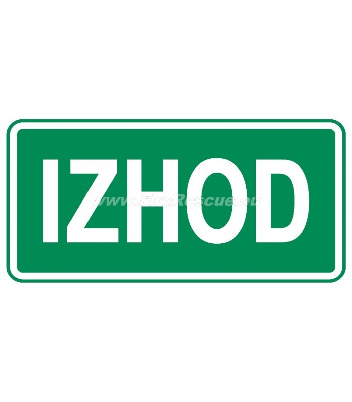 Warnetikette für die Evakuierung IZHOD, das sich in öffentlichen Bereichen über dem Ausgang des Gebäudes befindet, um den Ausgang des Gebäudes anzuzeigen. Es ist nur für den internen Gebrauch bestimmt.