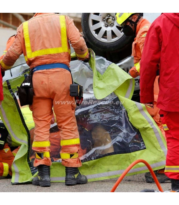 Schutzdecke für Opfer bei Verkehrsunfällen. Sie bedeckt und schützt den Verunfallten während seiner Retten aus dem Unfallfahrzeug.