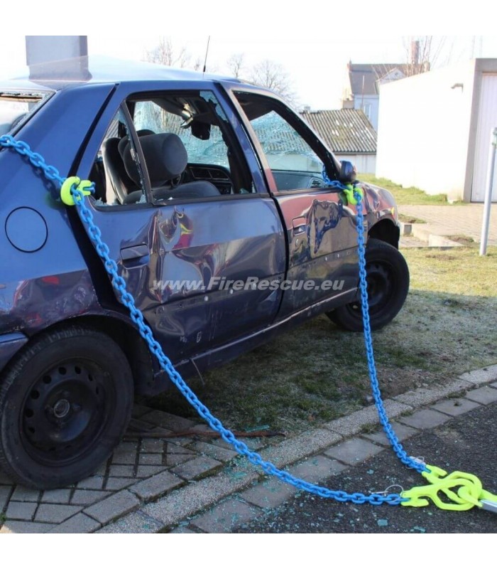 Sekunden entscheiden bei schweren Unfällen über Erfolg oder Misserfolg. Extreme Deformationen und die moderne Bauweise der Fahrzeuge erschweren zunehmend die Arbeit der Rettungskräfte. Einfach und effektiv zeichnet sich hierbei der Einsatz des Kettenrettungsset aus. Die in Skandinavien bereits mit großem Erfolg standartisierte Methode und Ausrüstung erzielt eine schnelle patientenschonende Rettung.