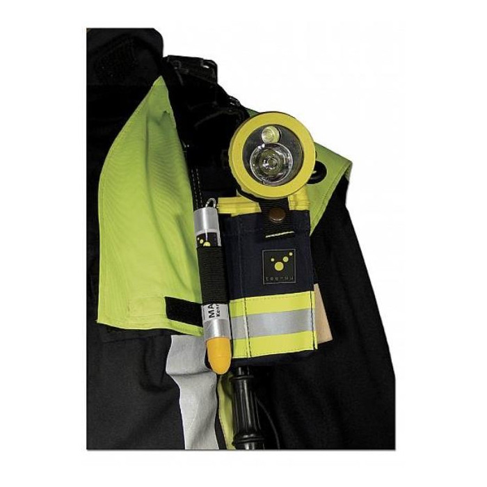 Zwei Probleme, eine Lösung: Der verlustsichere Transport von Handsprechfunkgeräten und Knickkopflampen stellt Atemschutzgeräteträger immer wieder vor eine Herausforderung. Wer kennt das nicht: Kurz nach vorne gebeugt und schon fällt das Funkgerät zu Boden. Im Einsatzfall kann der Verlust der Kommunikation fatale Folgen haben.
