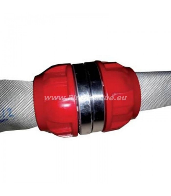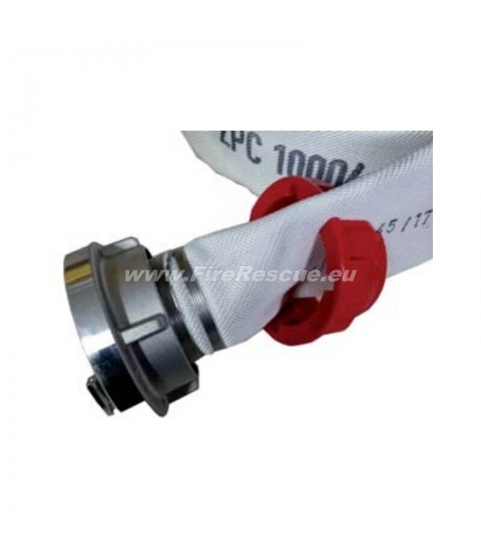 Edge protecting hoses to pass around corners and up stairs. It additionally protects the fire hose at the end of the throat and prevents the hose from penetrating.