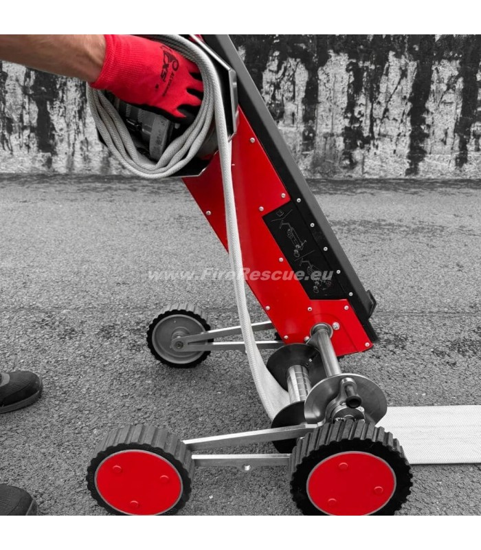 - Foldable 4-wheel chassis for superior comfort when winding heavy fire hoses