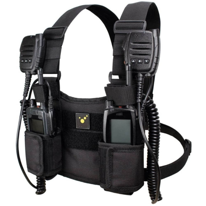Comfortable harness for up to two radios or other equipment, such as torch or mobile.