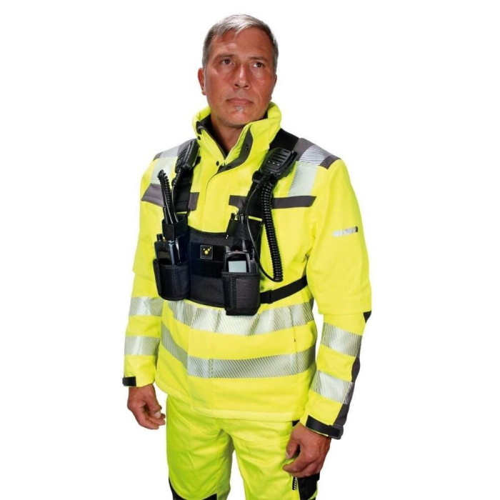 - Versatile: individual adjustable compartments for radio, swivel-head torch etc.