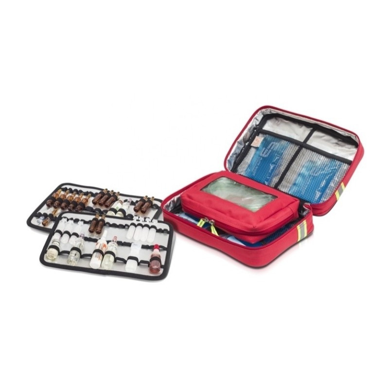 - Removable middle compartment with transparent window for syringes, rubber tourniquet, gauzes, etc.