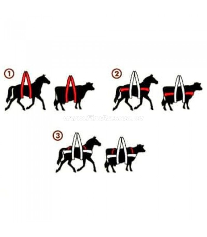 - Special harness developed for lifting and heli-transport operations of bovines and equines in emergency situations; it can be used for similar size animals.