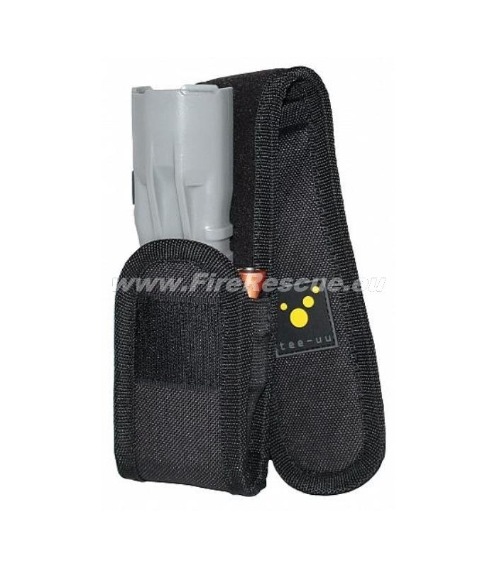 The holster can be attached to a belt or vest with a 25mm wide loop - secured by a metal snap fastener.