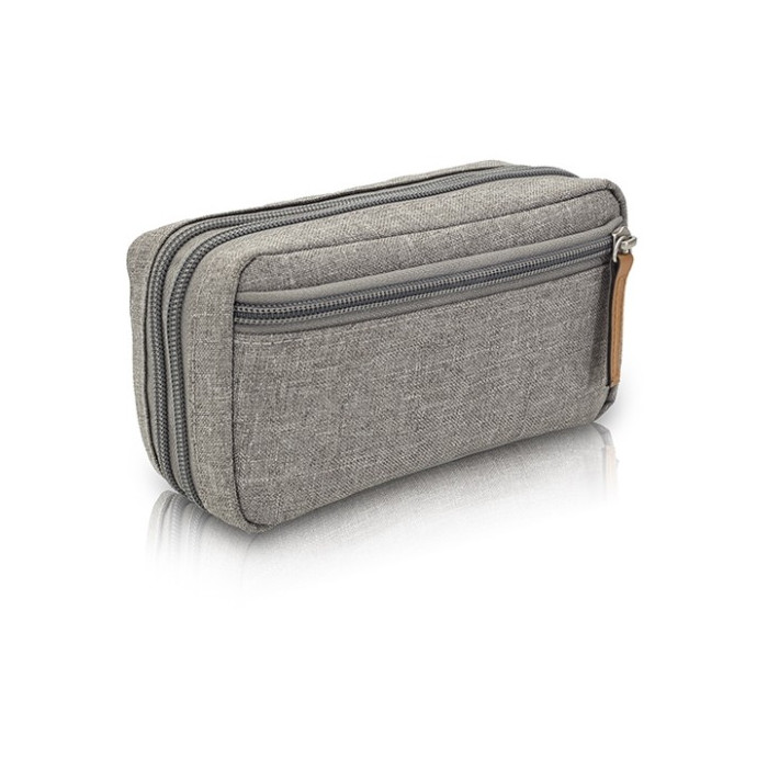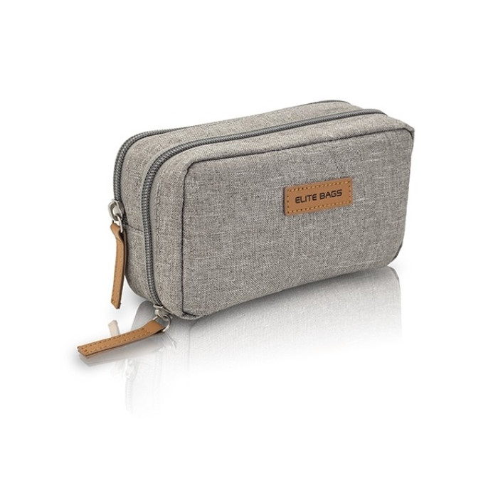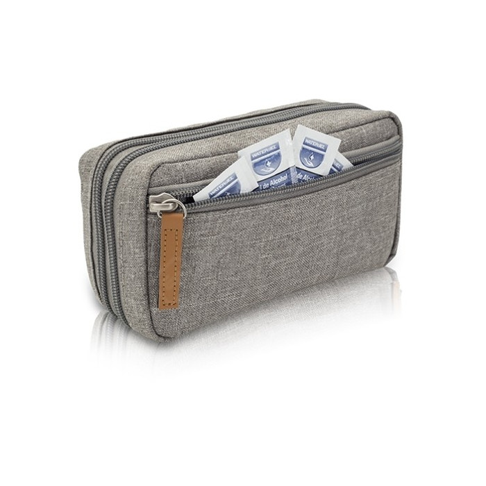 Elegant bag with different compartments and elastic bands to carry the diabetic kit in an organized way.