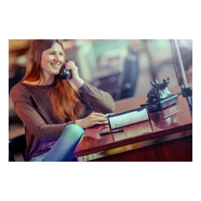 - Large compartment for pencils, pens, highlighters, fountain pens, fine liners, markers, colored pencils, small ruler, eraser, sharpener, compass, paperclips and correction pens