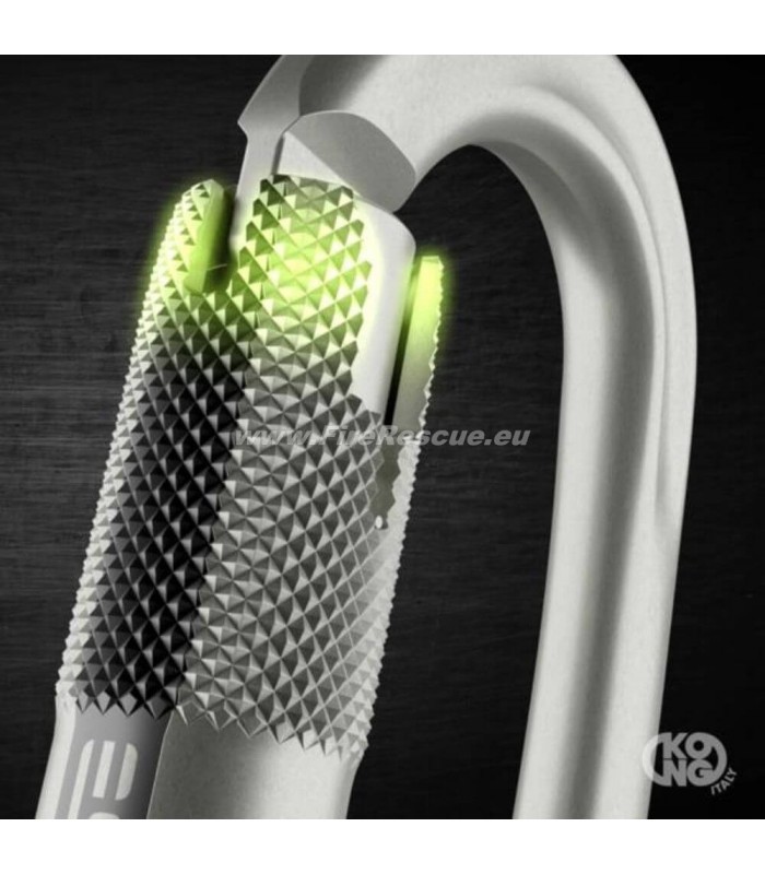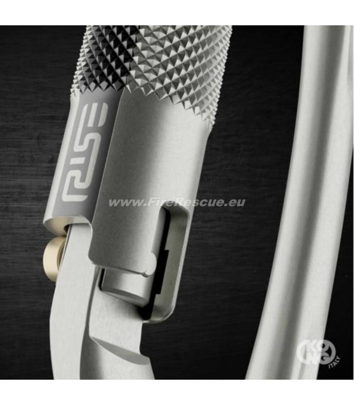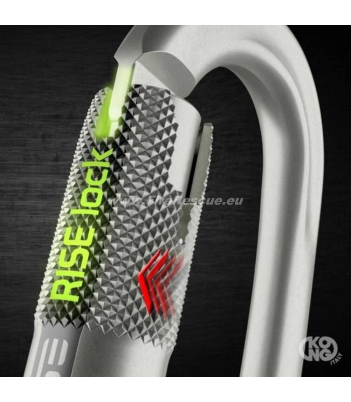 - RISE™ (RIght SEquence) is an innovative automatic locking system patented by Kong that provides the convenience of a 2-movement opening and closure, while significantly reducing the risk of accidental opening. Its operation is as simple as it is effective: to open it, you need to perform the two movements of rotating the sleeve and opening the gate in that “right sequence”. This means that if you press the gate first, the sleeve will not rotate and therefore the carabiner remains locked. This protects the carabiner from accidental opening caused by rope entanglement or from the carabiner gate pressing against an edge – a concern with other 2-movement closure carabiners. In these examples, this new locking system intervenes, preventing accidental opening