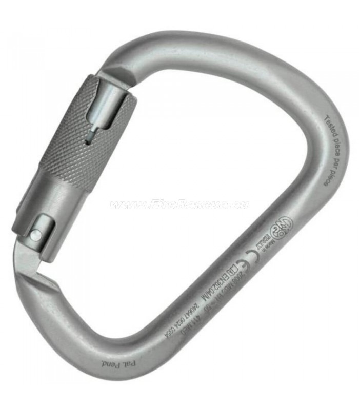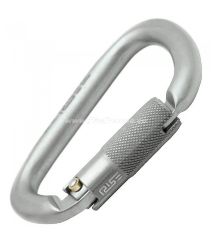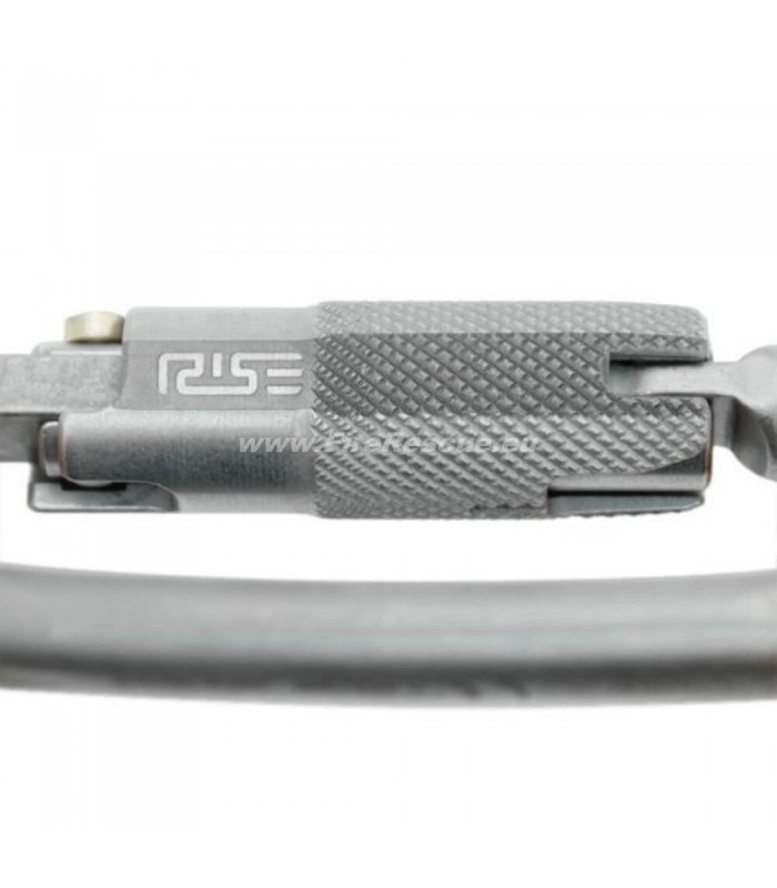 Carbon steel carabiner with a wide opening, equipped with the new RISE Lock™ automatic sleeve.