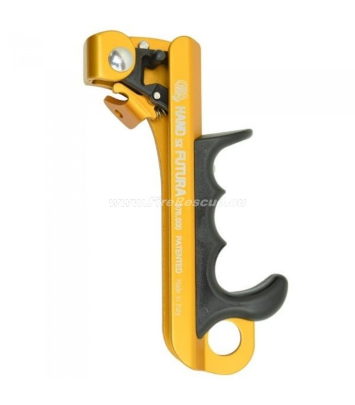 A revolutionary rope clamp for its extremely tiny dimensions (only 125g) and ergonomic shape. Its small size allows the users hand to sit comfortably inside the device, close to the rope in the same way as you would grabbing the actual rope.