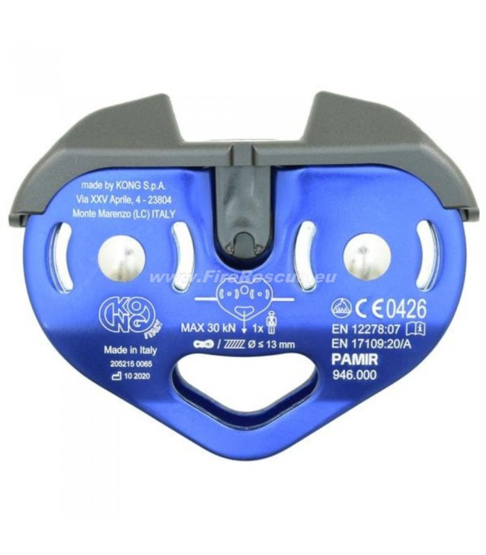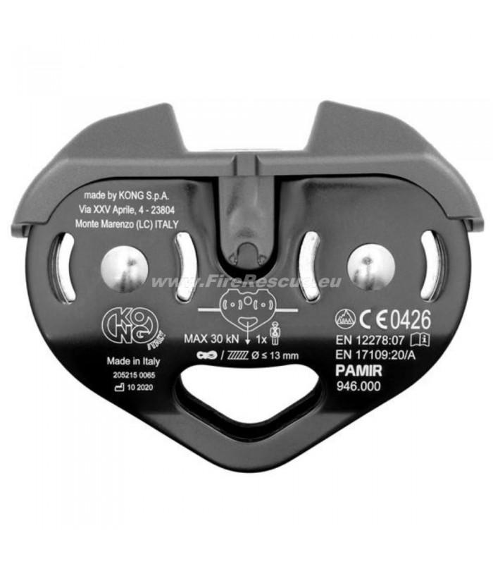 Kong Pamir FAST zipline double pully with aluminum body and double stainless steel wheels. For use on ropes or steel cables of maximum diameter 13 mm.