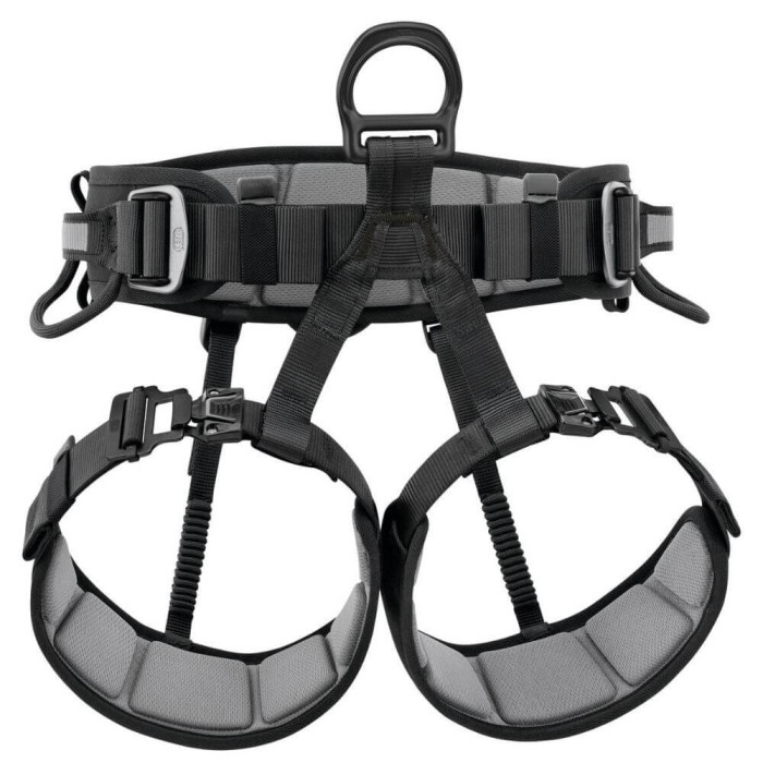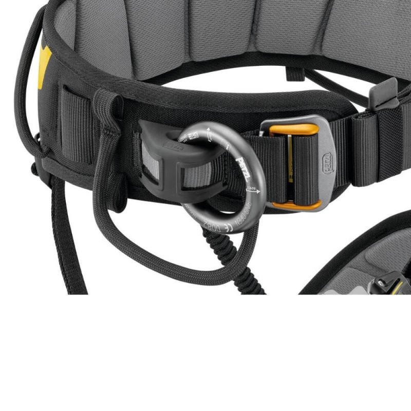 Metal ventral attachment point distributes the load between the waistbelt and the leg loops during suspension.