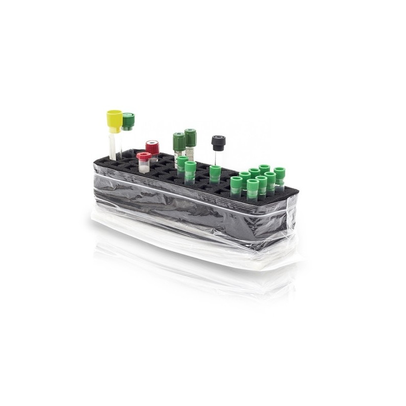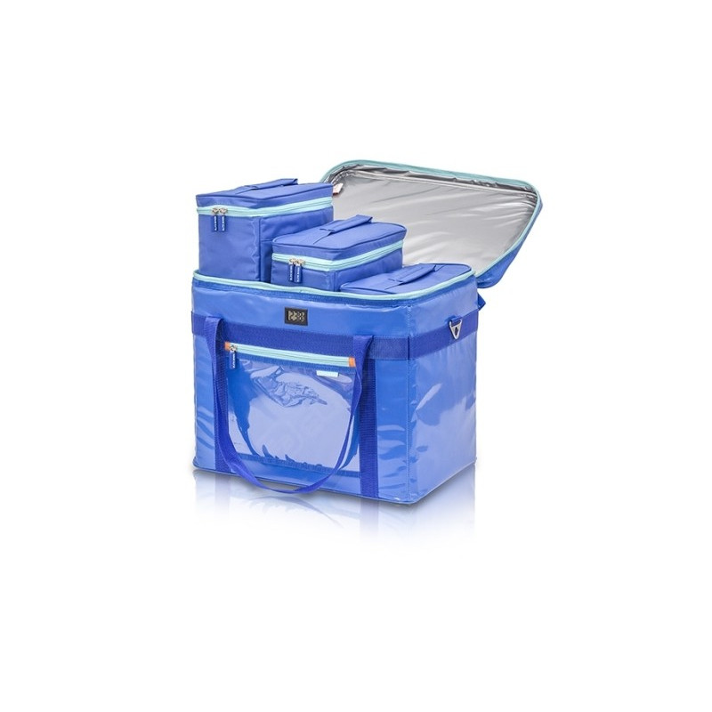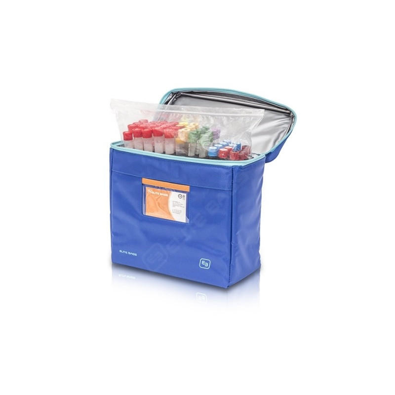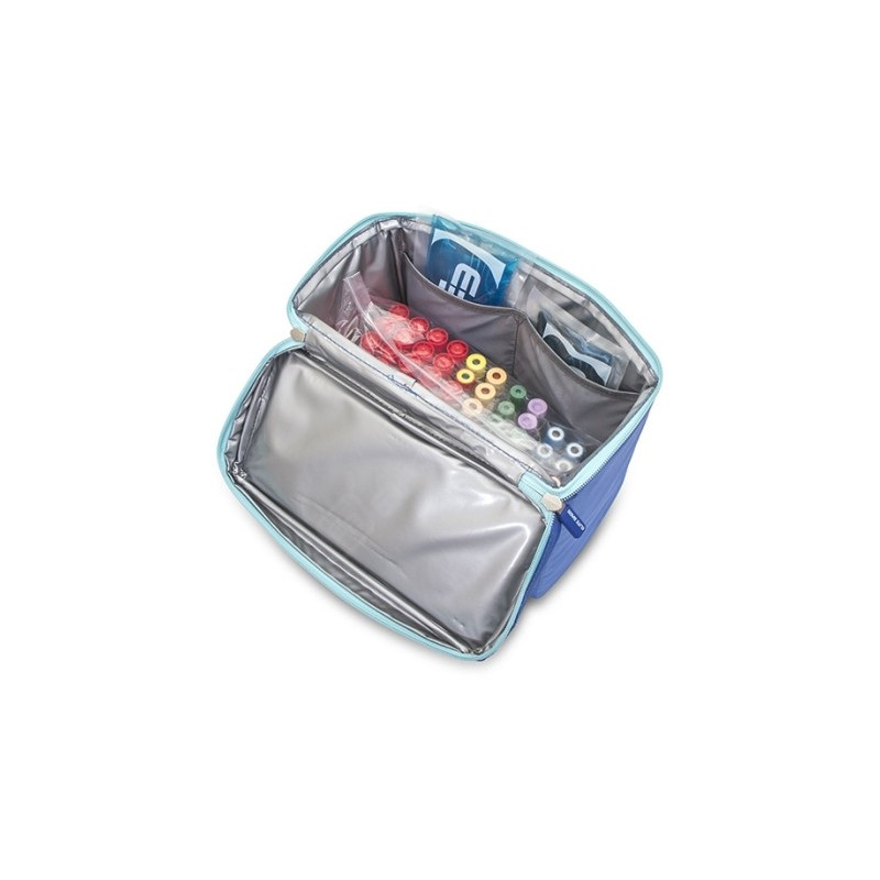 High capacity isothermal bag that allows the transport, in an organized way and under optimal conditions, of 300 diagnostic samples and 36 urine samples, from the extraction center to the laboratory.