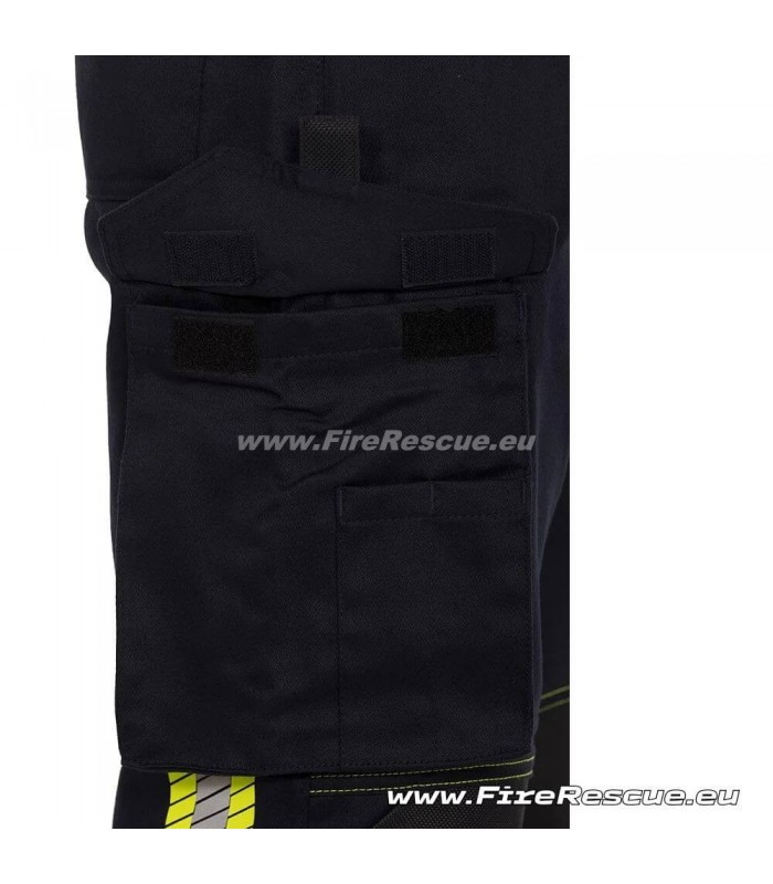 - Right thigh pocket with two pen pockets on the outside, cell phone pocket on the inside, hook-and-loop closure, and aramid neoprene pull tab (for easy opening with gloves)