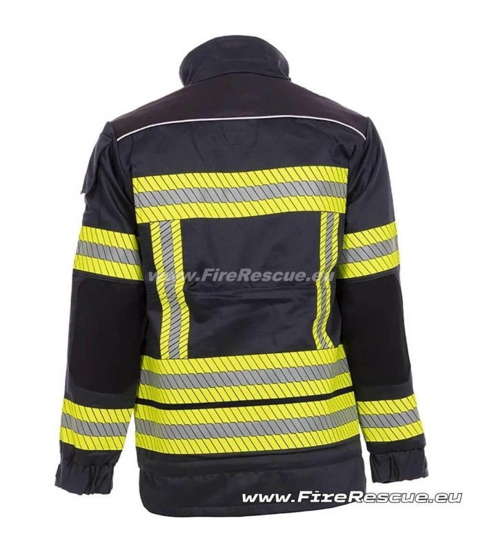 Experience ultimate functionality and comfort with our RESCUEWEAR TH firefighter jacket, designed for maximum performance and freedom of movement. This dynamic garment features modern, highly visible segmented reflective strips compliant with EN ISO 11612, offering optimal protection and comfort in every situation.