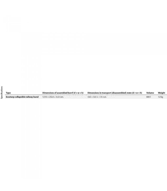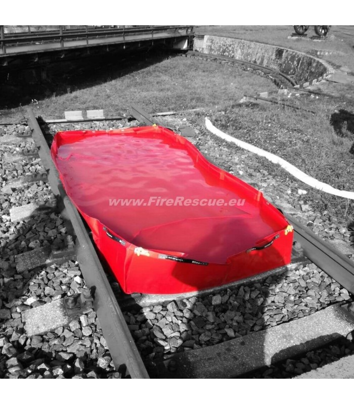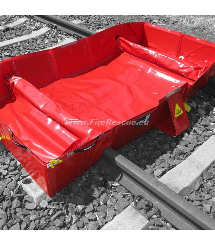 Eccotarp Collapsible Spill Bund RAIL designed for use on railway tracks. The railway bund is designed to protect the environment, persons and objects from hazardous leaks from trains and other rail vehicles.