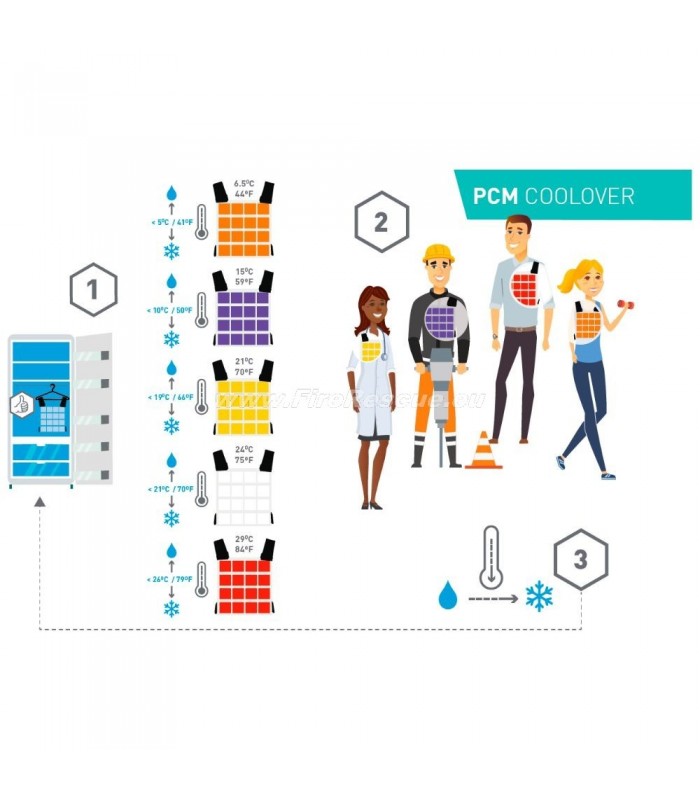 - (Re)activation is fast and easy; simply put the PCM CoolOver in ice water, freezer or fridge, or just store it at a 3ºC/ 37ºF lower temperature until the CoolOver becomes fully solid.
