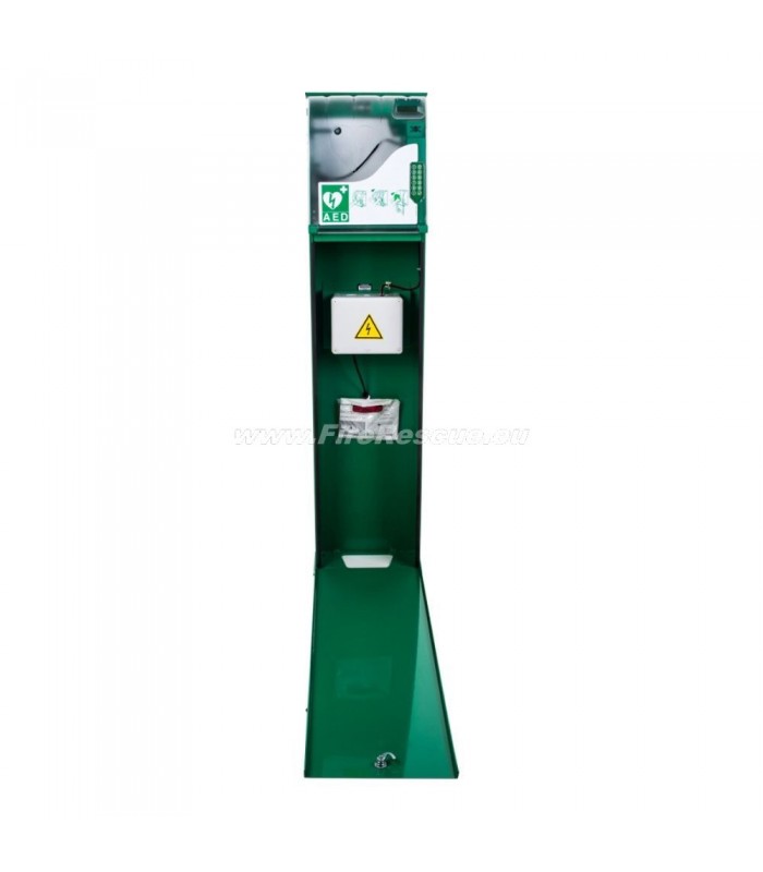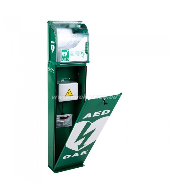 The AVIVA BORNAVIE free-standing base unit is intended for installation by the wall or in areas where it is not possible to place the AED cabinet on the wall, like squares, parking lots, beaches, promenades, ...