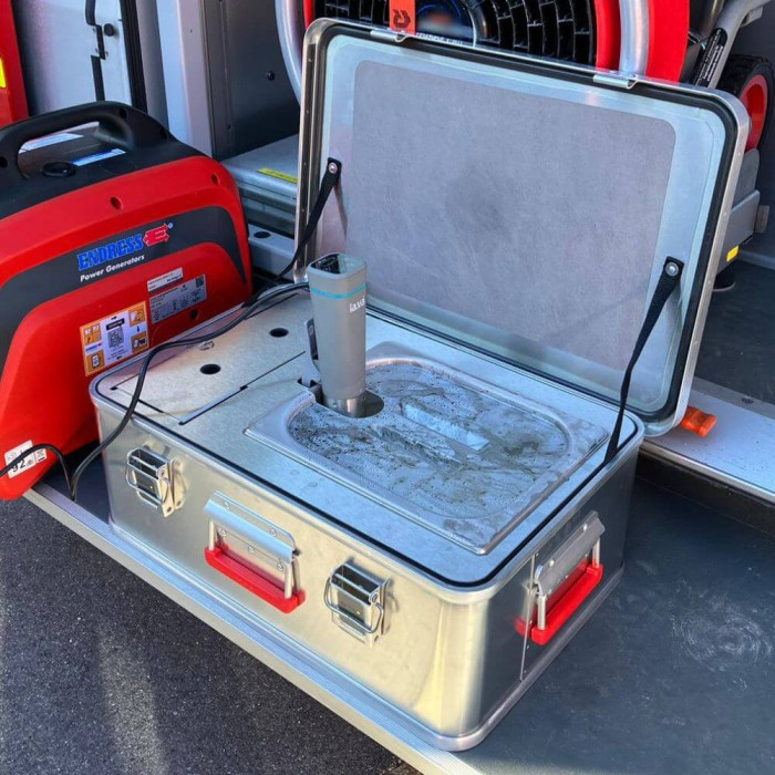 The complete set is delivered in a SafeCase including a foam inlay. This insulates the water basin and all the necessary components are stored clearly.