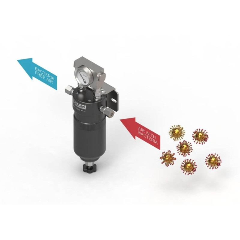 - The compressor is equipped with a single large filter, ensuring long operating hours and breathable air, in accordance with the UNI EN 12021:2014 standard.